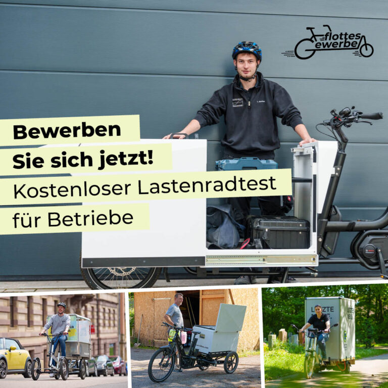Das Programm wird im Auftrag der Stadt Stuttgart von der Berliner Agentur cargobike.jetzt organisiert und durchgeführt. Interessierte Betriebe können sich noch bis zum 6. Juli als Testunternehmen bewerben. Ausgewählte Betriebe erhalten im Rahmen der Testphase Anfang September nicht nur das passende Lastenrad, sondern auch Wartung, Versicherung und Logistik inklusive.