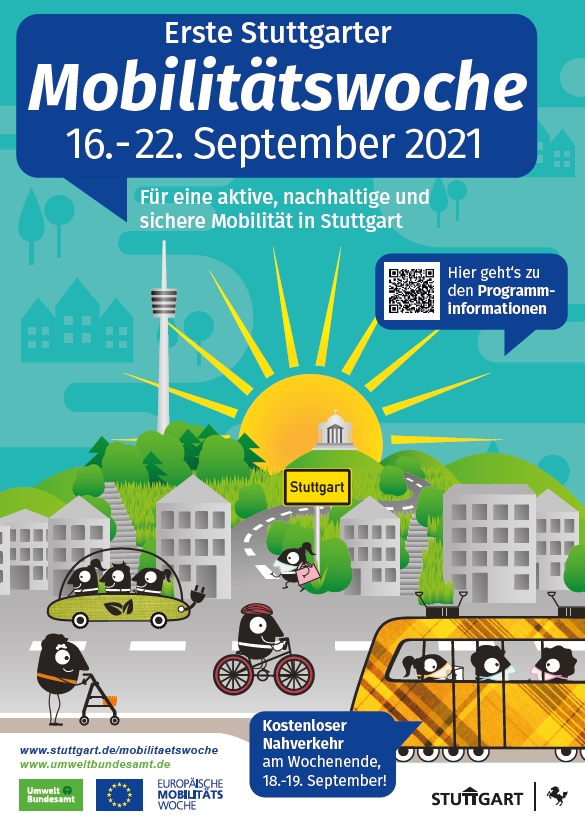 Ab 16. September startet die Erste Stuttgarter Mobilitätswoche. Neben einer Vielzahl von Veranstaltungen über das ganze Stadtgebiet von Stuttgart verteilt, können Interessierte sich jeweils werktags von 14 bis 18 Uhr im Rathaus-Foyer zu unterschiedlichen Themenschwerpunkten von verschiedenen Ämtern und Referaten informieren lassen.